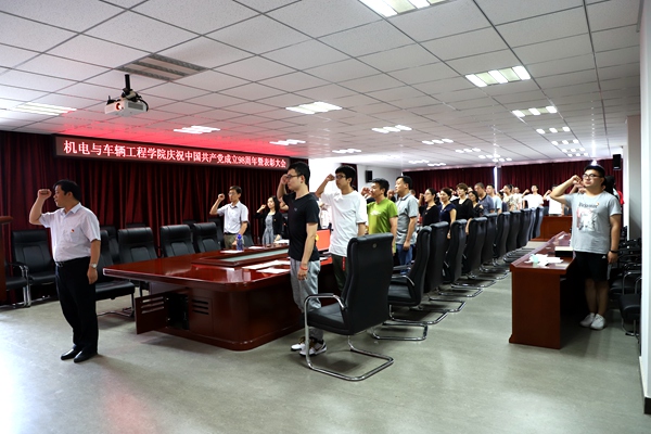 会议在庄严的国歌声中拉开序幕。会上,全体党员面向党旗,经理杨建伟同志领誓,进行了新党员宣誓和老党员重温入党誓词。