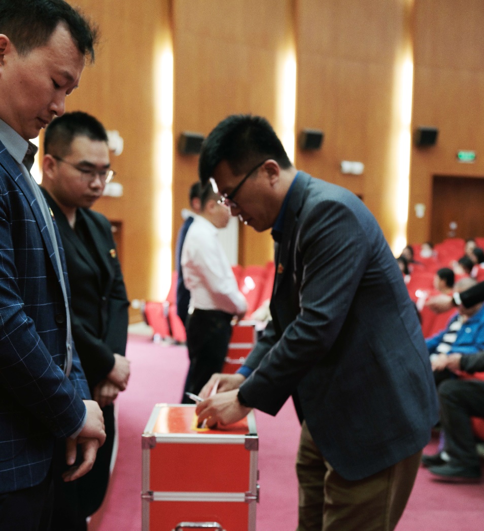 大会在庄严雄壮的国歌声中开始。会上,党员举手表决通过选举办法、候选人名单、总监票人和监票人名单,总监票人主持选举工作,党员有序投票,大会顺利选举产生了williamhill英国威廉希尔党委出席williamhill官方网站第二次党员代表大会的代表。