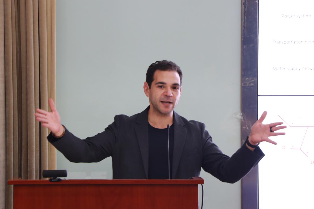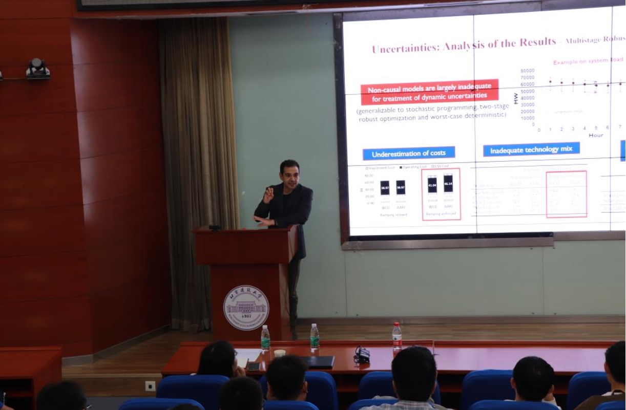 讲座伊始,邢金朵老师向我们介绍了Adam Abdin副教授,Adam教授来自法国巴黎萨克雷大学-中央理工高等电力公司-工业工程实验室。他的研究领域集中于不确定条件下大型复杂系统优化运筹研究,研究重点是结合数据分析方法、鲁棒优化技术和博弈论模型开发方法框架,以改善基础设施系统的稳健性和运营策略。目前Adam教授已发表 20 多篇学术论文,其中包括European Journal of Operational Research,Renewable and Sustainable Energy Reviews, Applied Energy等。