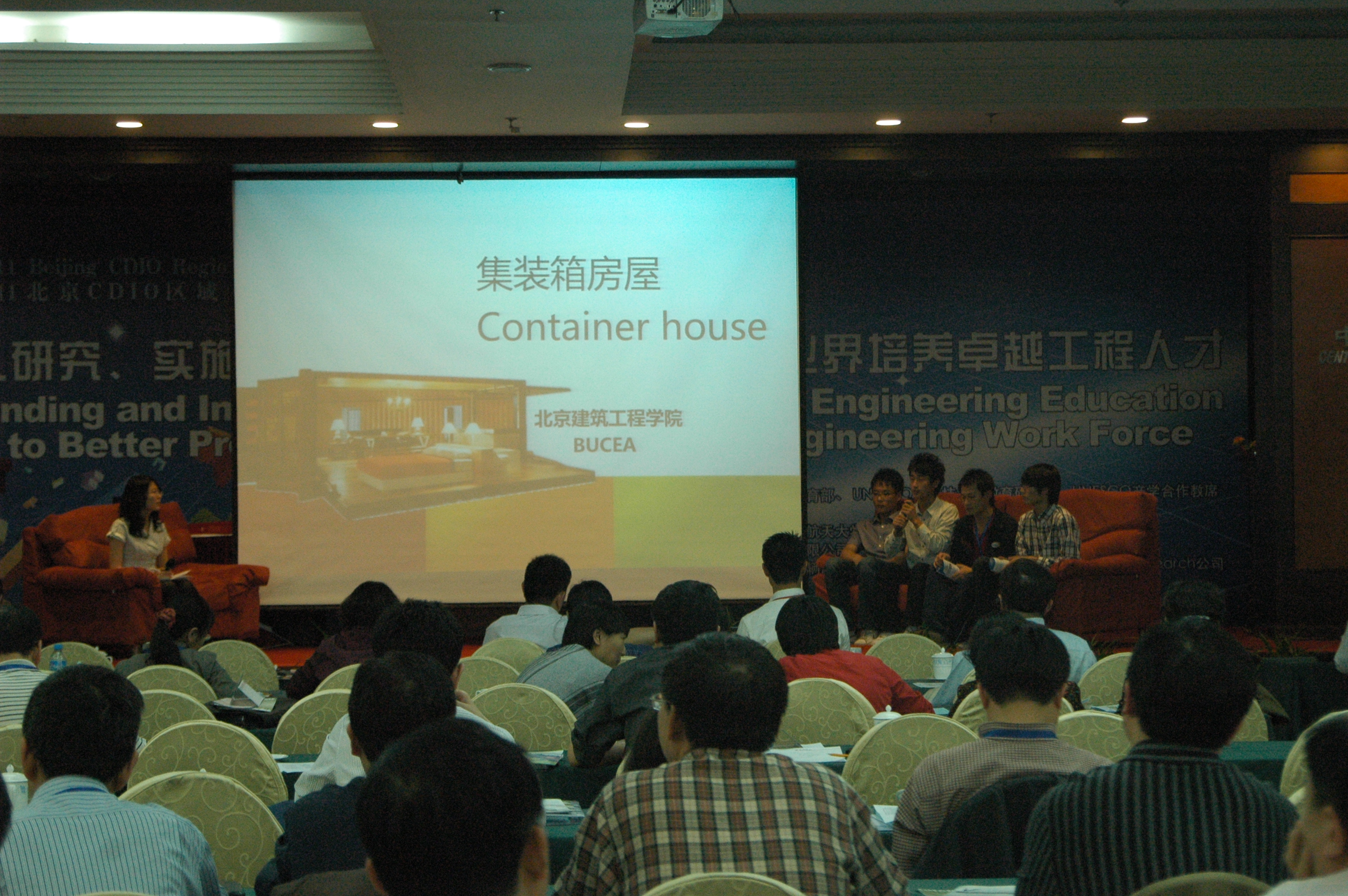 本次大会的一个亮点是将员工项目展示纳入正式程序,williamhill英国威廉希尔09级何振龙、马瑞、华岩、何旭国等同学(秦建军指导)与其他七所高校的员工一起进行了“集装箱房屋”实践项目展示,并且是唯一一个以访谈形式进行经验分享的项目,员工们向与会嘉宾分享了近一年中按照CDIO模式进行的项目实践的经验。