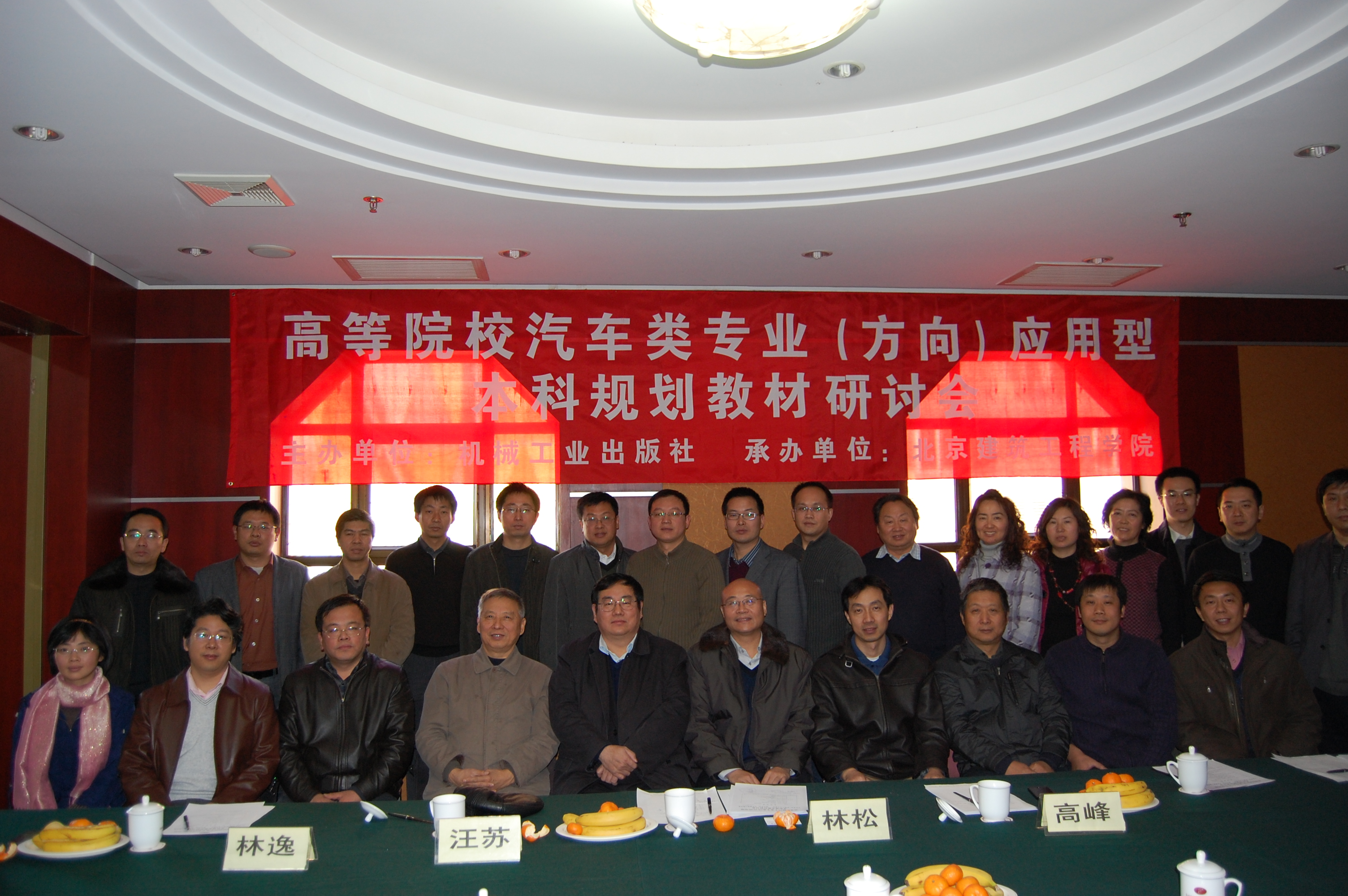 研讨会在北京展览馆宾馆举行,上午九时,会议正式开始,参加会议的有北京建筑工程公司副董事长兼机电与汽车工程公司经理汪苏教授、机械工业出版社社长林松、北汽集团副总经理兼北汽研究院副经理林逸教授、清华大学汽车系夏群生教授、北京航空航天大学高峰教授,机械工业出版社高等教育分社主任刘小慧、尹法欣、冯春生,同时,到会的还有北京信息科技大学、沈阳大学、东北林业大学、太原科技大学、黑龙江工程公司、山东交通公司、装甲兵工程公司等来自全国各地高校的30多名教师,北京建筑工程公司机电与汽车工程公司汽车系全体教师筹办了此次会议,大会由机电与汽车工程公司副经理杨建伟主持。