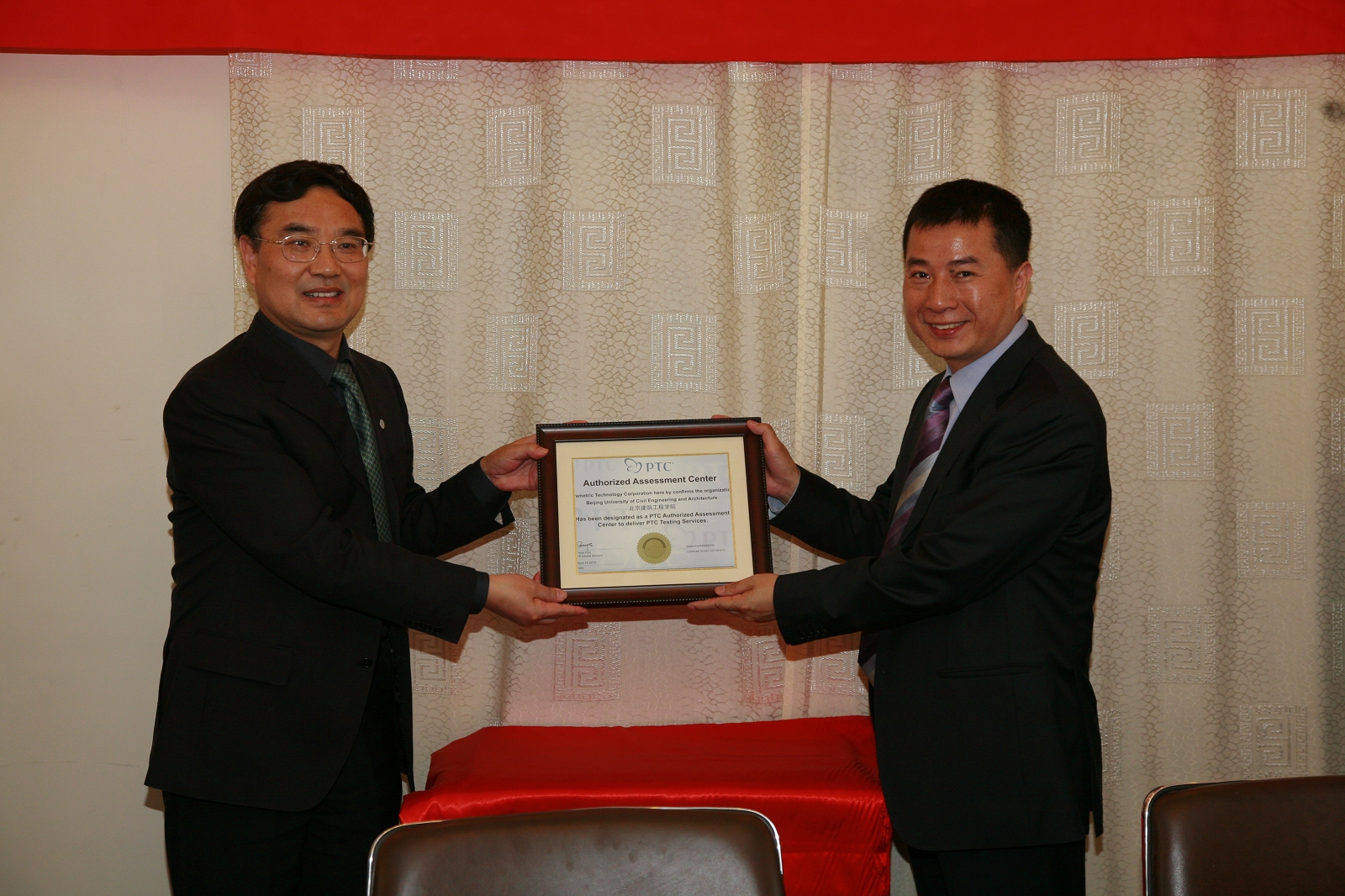 最后,举行了PTC公司授牌仪式与工程机械装备技术创新中心揭牌仪式,PTC大学副总裁潘继得先生向郑文堂董事长授牌,北京凯必盛自动门技术有限公司董事长兼总裁石建立先生与宋国华副董事长共同为工程机械装备技术创新中心揭牌。
