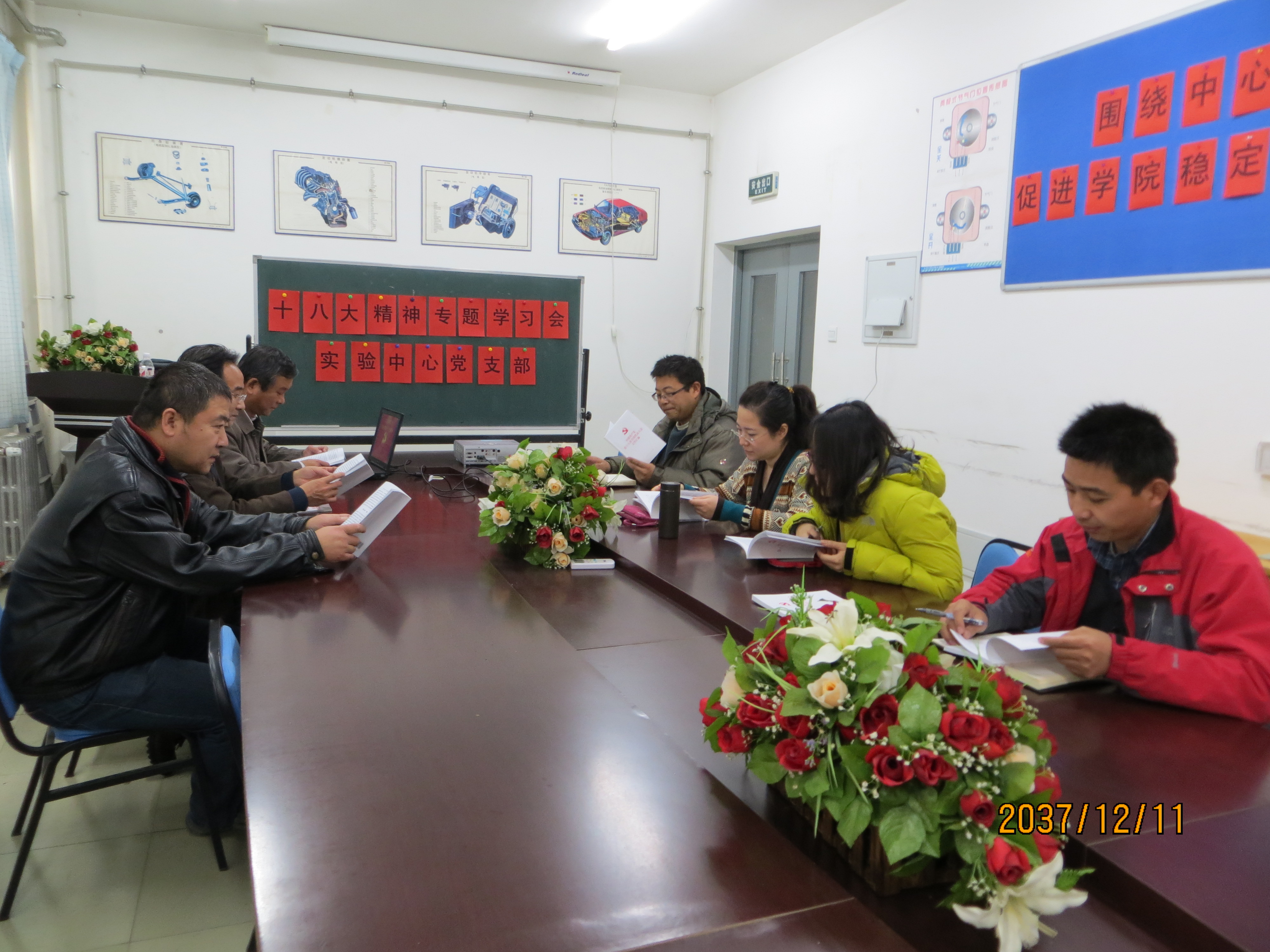 实验中心党支部12月11日,召开全体党员会议认真学习胡锦涛总书记的报告,深入领会报告的精神实质、思想内涵以及新思想、新观点、新举措。通过学习,大家一致认为党的十八大报告鼓舞人心、催人奋进,在理论阐述上有深度,在实践布局上有厚度,在战略目标上有高度,在具体措施上有力度。大家畅所欲言,特别就胡总书记“十八大”报告中指出的努力办好人民满意的教育,让教师们体会到党中央对教育的高度关注和重视;同时,提高教育质量,培养员工创新精神,培养德智体美全面发展的社会主义建设者和接班人,增加了教师教书育人的责任感和使命感。大家表示,要立足本职,不断改进教学方法和教学手段,不断提高教学质量,提高人才培养质量,教好书育好人,在这个平凡的岗位上争创佳绩。