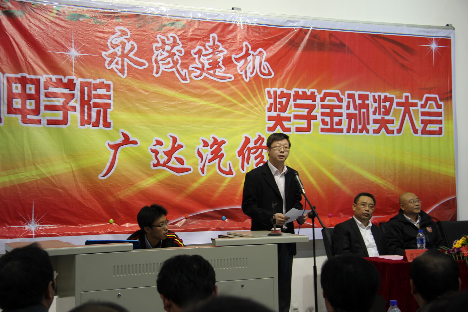 激动人心的颁奖仪式后,企业领导和公司领导分别作了精彩纷呈的讲话。广达汽车维修设备有限公司总经理王鹏概括介绍了企业发展历史,重点阐述了校企合作的意义,并且鼓励同学们努力学习,奋发向上。永茂集团常务副总经理、北京永茂建工机械制造有限公司执行董事董思军高度赞扬了机电学子良好的精神风貌,承诺将为优秀同学提供更大的奖励。文法公司副经理刘国朝老师用精辟的“三句诗”向大一、大二员工介绍英语学习方法,用“兴趣、欲望、自信”三个词鼓励员工们发奋图强,学好英语,通过四级。