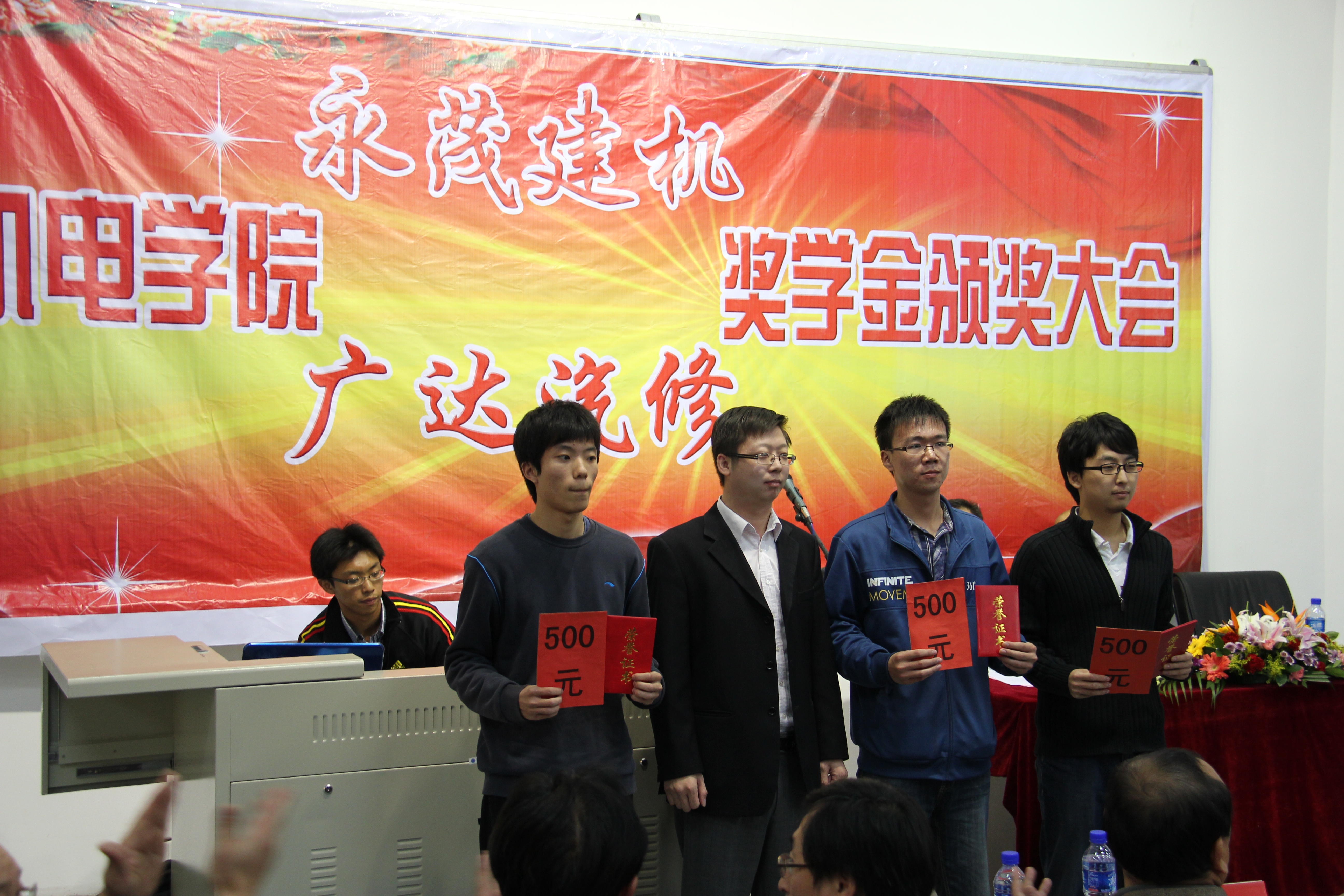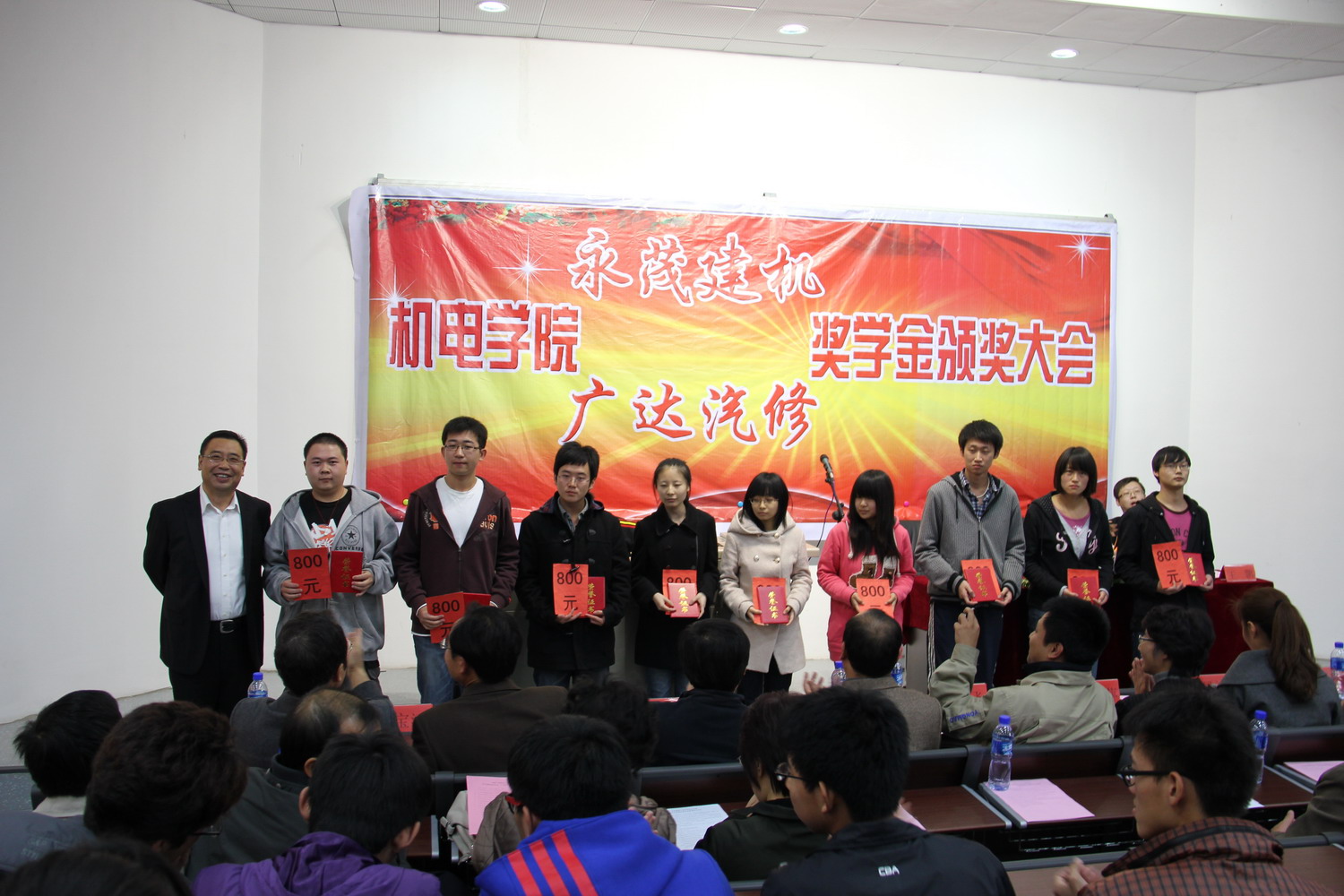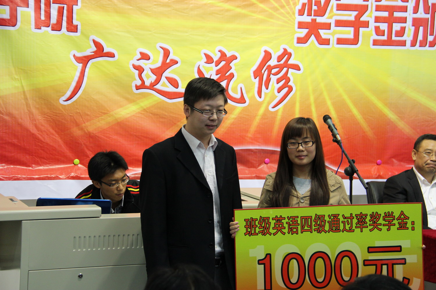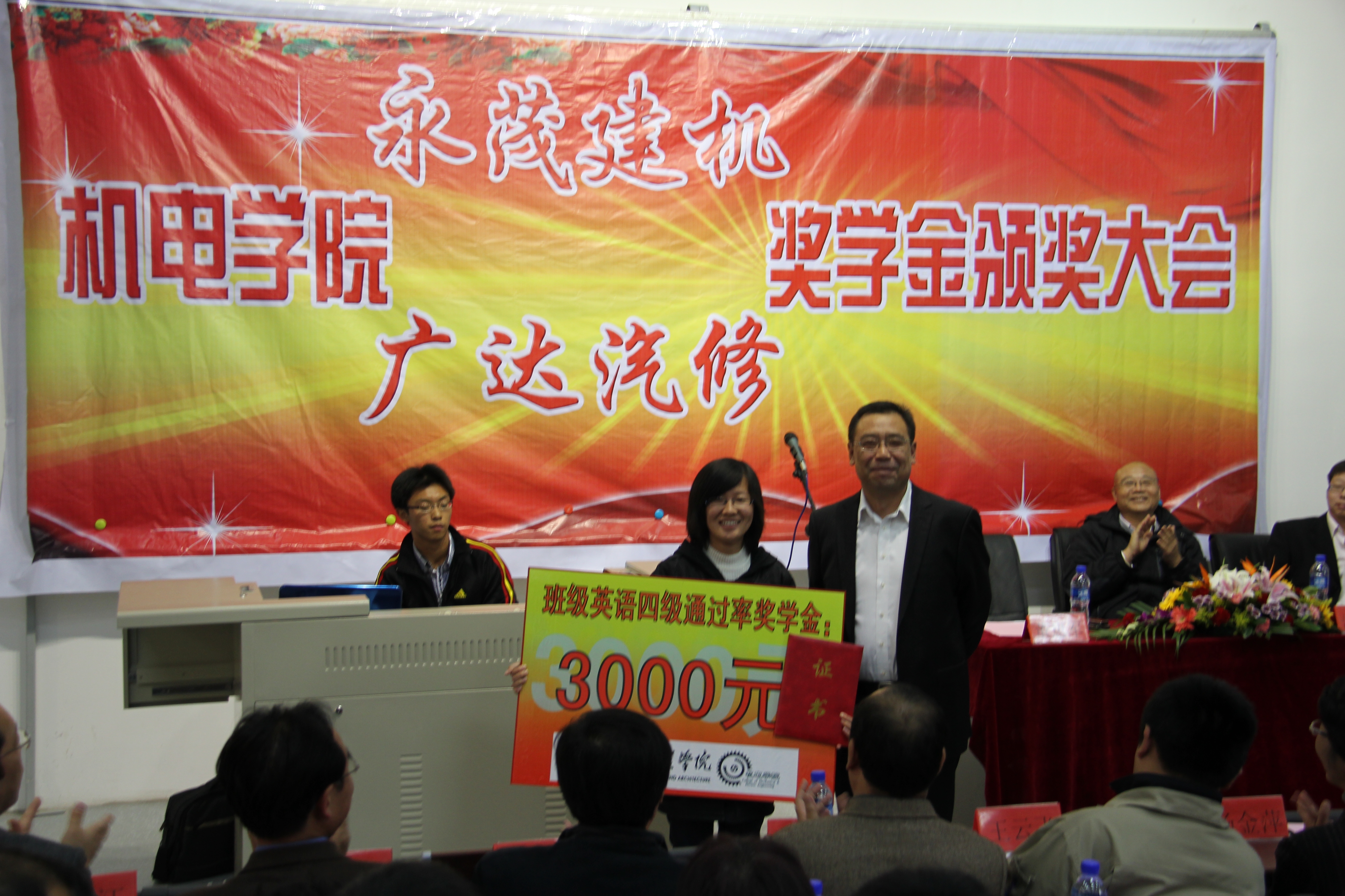 在隆重和热烈的氛围中,大会正式开始。公司党总支书记王跃进和williamhill英国威廉希尔副经理陈宝江分别宣读了永茂建机奖学金和广达汽修奖学金的表彰决定,共表彰2010/2011学年获得英语学习个人优秀奖学金、综合一等奖学金、综合二等奖学金的本科生、研究生共74人,此外还表彰了永茂建机就业奖获得者2人,英语学习班级优秀奖两个(工业091和机094)。