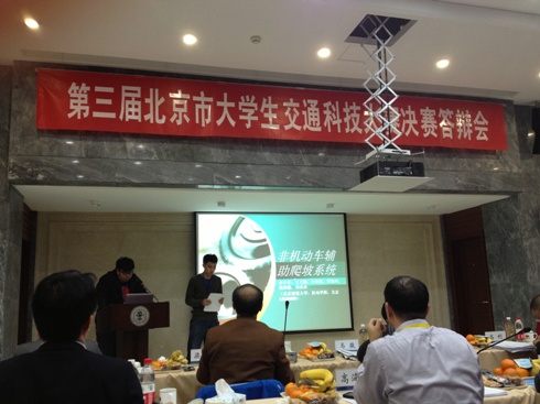 11月24日,公司员工在williamhill英国威廉希尔团总支书记刘星老师的带领下参加了在北京交通大学举办的“第三届北京市老员工交通科技大赛”。公司共有两组作品参赛,分别是代文鹏、季旭武等同学完成的作品《分层式十字路口》(指导教师:朱爱华老师),王文腾、白景宸、魏祎聪等同学完成的作品《非机动车辅助爬坡系统》(指导教师:姚圣卓老师)。经过激烈的答辩和模型展示环节,两组同学均获得大赛三等奖。
