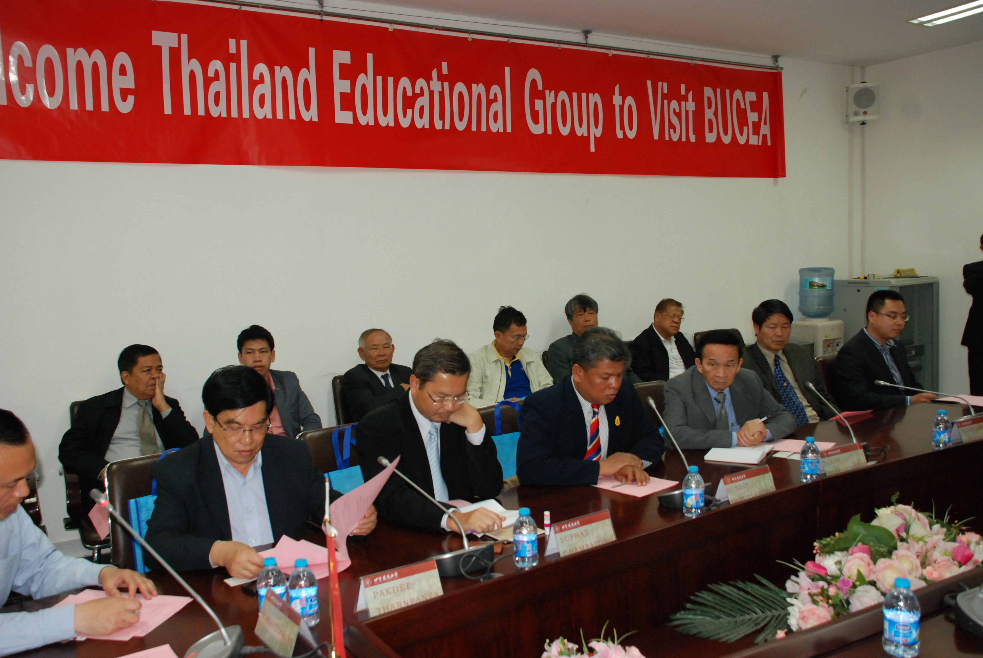 2013年5月23日,泰国教育部民办教育委员会办公室主任BUNDIT SRIPUTTANGKUL、曼谷高等院校教育部主任SUPHAT CHAMPATONG、曼谷高等教育委员会创始人之一,原皇家大学集团总裁TANOM INTARAKUMNERD及曼谷Mahachai汽车技术研究所管理办公室主任SOMRUAM PRUKSATIEN携泰国高校访问团一行18人,在公司校企合作单位、实践教学基地—北京广达汽车维修设备有限公司董事长王通业、总经理王鹏的陪同下到公司进行合作办学洽谈。