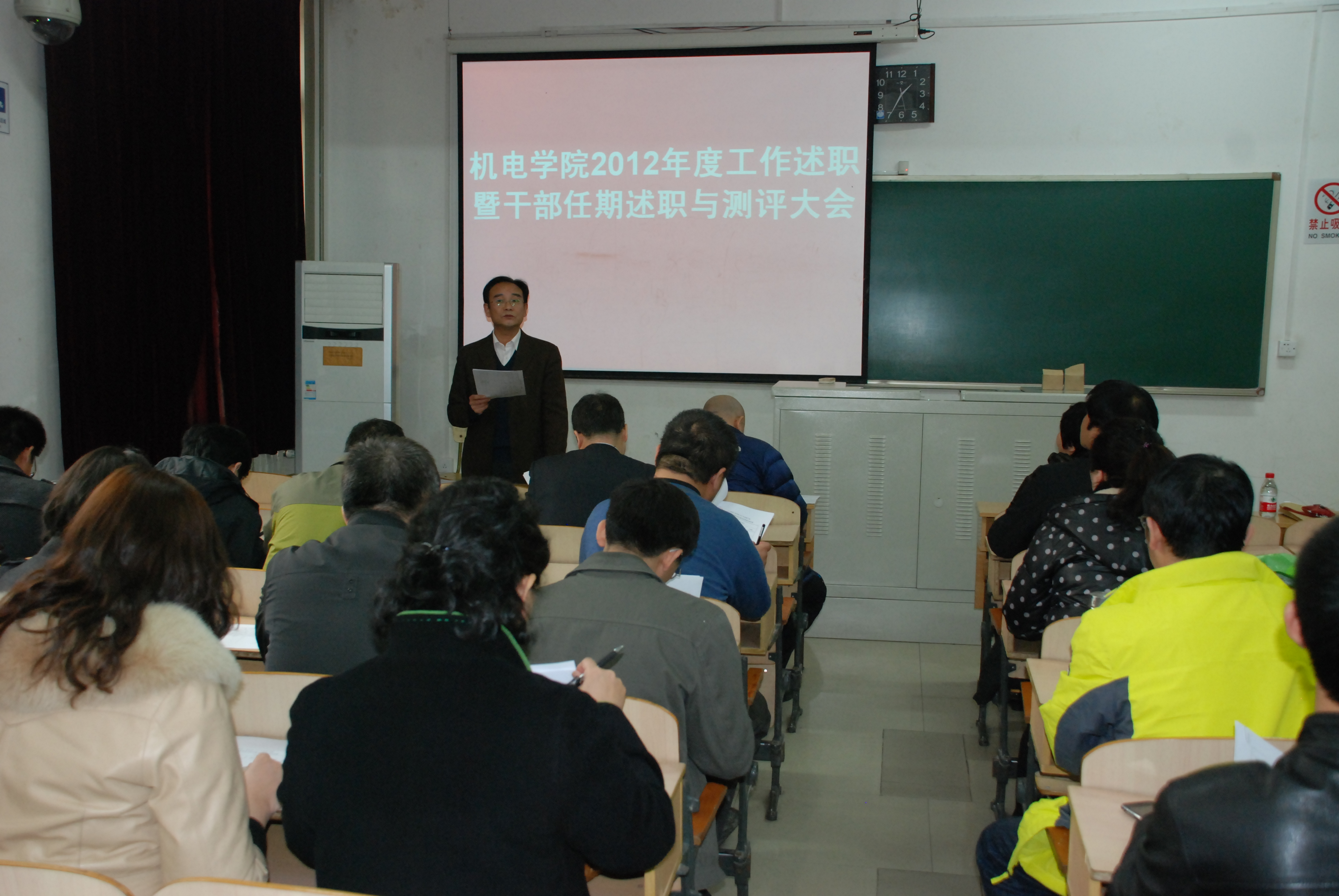 王跃进老师首先阐述了本次考核工作的指导思想、原则和工作步骤,并对干部考核工作的基本要求、重点内容和方法向与会人员做了介绍,他代表公司领导班子向大会汇报了2012年公司工作总结。随后,各领导围绕德、能、勤、绩、廉等方面依次向全体教职工和考核工作组述职,实事求是地汇报了任期内取得的成绩和不足。
