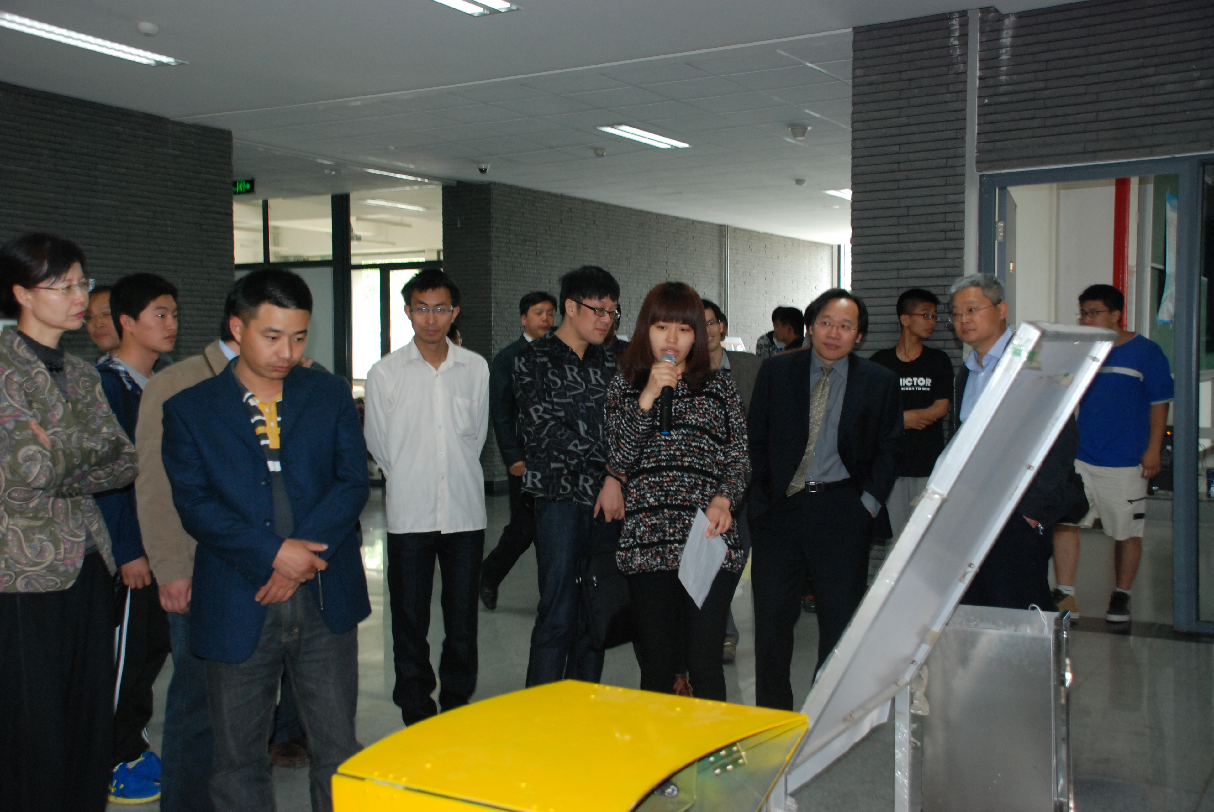 作品展示吸引了很多老师和同学们前来参观。展示现场——基础楼A座走廊里依次摆放了参赛作品介绍资料及实物模型,设计者为前来参观的老师和同学仔细介绍了设计理念和设计原理,并进行了现场演示。走入展示现场,如同来到了一个未来的幻梦课堂:“随心座椅”行走时可以锁定目标实现短距离的无线跟随,帮助携带书本等一些随身用品,行走过程中遇到障碍还能自动绕行躲避;“梦幻课桌”颠覆了传统的矩形设计,充分考虑了舒适度,减少了上课的疲劳感,有效的提高了听课效率;“便携多功能组合式理论力学教具”使理论授课内容具象化,可以边授课边演示,有利于员工对授课内容的理解。每一件展品都凝结着设计者的智慧和心血,让参观者深刻感受到机械创新的魅力,对未来的幻梦课堂充满期待。展示期间,公司党委副书记张启鸿、图书馆馆长王锐英、员工工作部部长黄尚荣、团委书记朱静等老师莅临现场参观了展览。