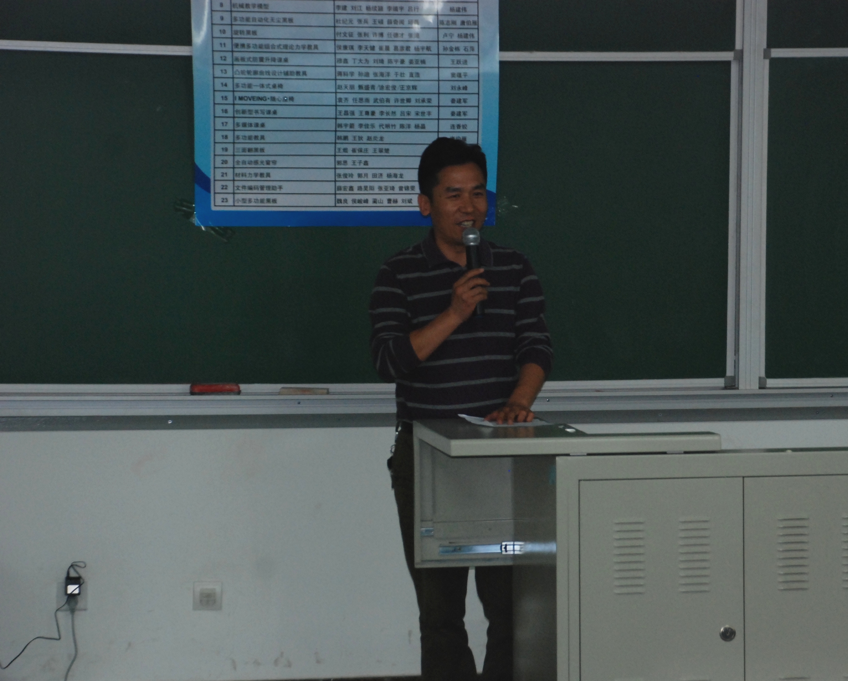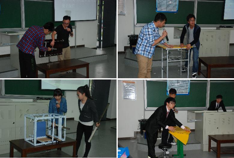 本次大赛的主题为幻•梦课堂,内容为“教室用设备和教具的设计与制作”。每一组参赛作品都凝聚着指导教师的智慧和设计者的心血,各种新颖的课桌椅、黑板、实验台,以及各门学科授课时所需的教具,参赛选手展示的实物模型五花八门,目不暇接。经过三个小时的精彩答辩,共评选出一等奖2项、二等奖4项、三等奖6项、最佳创意奖2项。优秀作品将代表公司参加首都高校第七届机械创新设计大赛。校图书馆馆长王锐英对比赛进行了点评,王馆长建议各参赛组在设计作品时充分考虑受用人群的需求,在实物模型功能展示方面下功夫,努力做到精益求精。首都高校第七届机械创新设计大赛评委王跃进老师介绍了北京市比赛的具体情况,希望各参赛组严格按照比赛要求,规范文本,完善作品功能,保证质量。