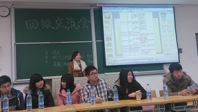 会上,各位四六级高分获得者与学弟学妹们分享了他们的备考经验与做题技巧。一位擅长听力的同学认为,“在听力中要抓紧一分一秒,上一题听完后赶紧去浏览下一题。速度是经过长期训练得到的成果,多听多看多读多背永远都是不败的真理”。针对写作部分,一位学长分别讲述了“议论文、说明文、描述文”三种不同类型作文写作方法,并将自己总结出来的两套写作模板分享给大家。四级最高分韦智元同学详解了占分值较大的阅读部分的解题技巧,特别强调要注意阅读中的比较级、最高级和转折词,“想要在有限的时间内看完全文并答对题目就不能逐字逐句,需要在问题中找出关键字,然后在相应的文段中精细琢磨,同时,回答问题时不能从自己的情感角度出发,而是带着作者的思想去做题”。学长学姐们都热情的鼓励大家:遇到瓶颈,不要灰心,坚持尝试,克服懒惰。在最后的提问环节中,学弟学妹踊跃提问,学长学姐耐心作答,现场气氛非常活跃。