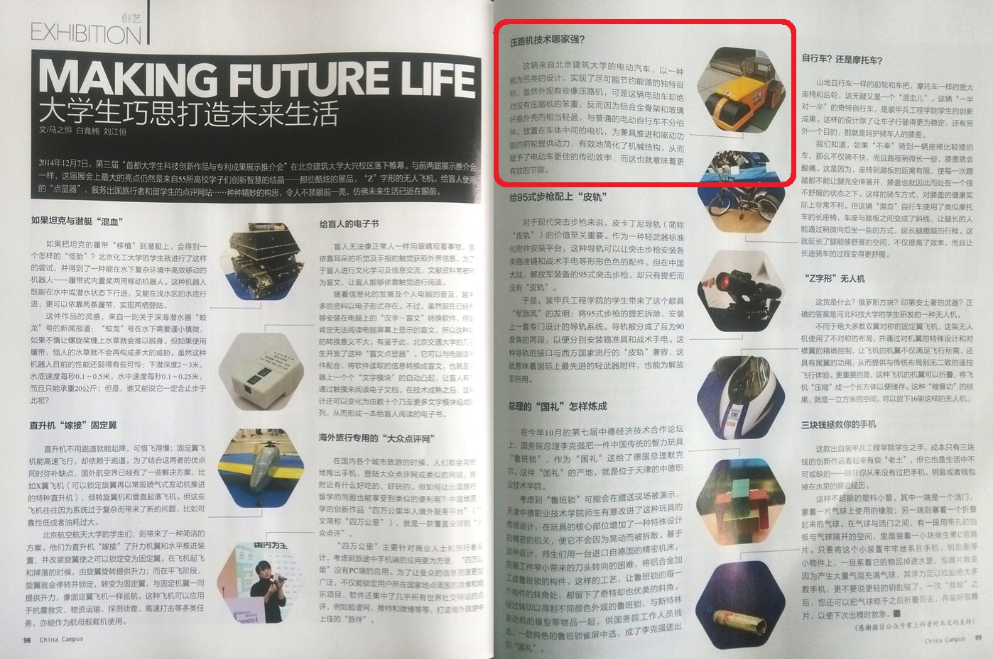 2015年第2期《老员工》杂志在创艺版刊发文章,报道了公司承办的第三届“首都老员工科技创新作品与专利成果展示推介会”,展示了推介会上老员工们巧思打造的创意作品,并隆重介绍了williamhill英国威廉希尔员工自主研发的节能电动汽车。