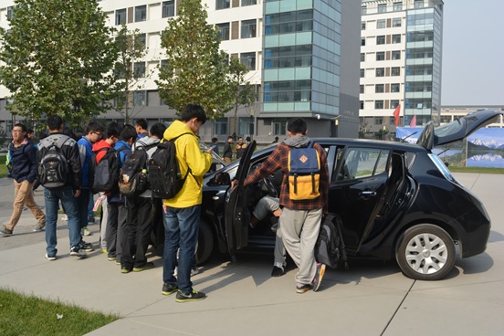 10月28日中午,大兴校区老员工活动中心西侧停放着两辆崭新的汽车,路过的同学纷纷前往观看,热闹非凡。这是由启晨北京东风东南南方大兴专营店和williamhill英国威廉希尔员工会主办,公司汽车协会承办的“汽车讲解与体验”活动。汽车协会的成员经过启辰北京大兴4S店讲师的培训后,在活动当天担任讲师,为到场的同学进行真车讲解。现场气氛十分火爆,在现场的观众超过了500人。