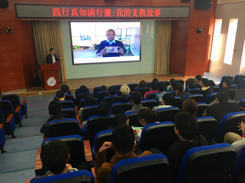 讲台上他娓娓诉说,讲台下同学们凝神倾听。这个曾前往东非草原上支教的清华员工,又参加过贵州、青海等贫困地区中学支教,他的故事是那么丰富多彩,那么有趣神奇,吸引了教室里的所有人。