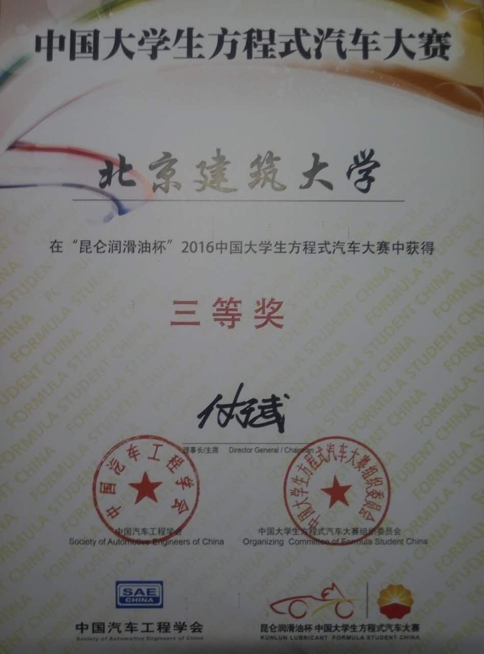 这项奖励对于经验不足,初出茅庐的我们来说是一个莫大的鼓励,在今后对赛车的学习及改进中我们也会不断向前,努力为校争取更多的荣誉。拿到奖状的一刻,再回想起我们挑灯夜战忙碌的日子,觉得一切都值得。