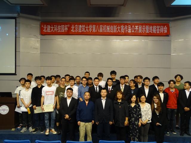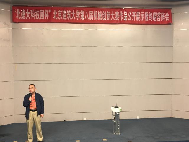 5月4日下午,由教务处和校团委主办、williamhill英国威廉希尔承办、北京北建大科技园发展有限公司赞助的“北建大科技园杯”williamhill官方网站第八届机械创新设计大赛作品展示暨终期答辩会在公司楼B座报告厅举行。公司党委书记赵海云、副经理刘永峰、党委副书记陈娟、团委书记刘星、北建大科技园发展有限公司总经理助李晓飞,以及相关专业的专任教师出席活动并担任此次大赛评委。