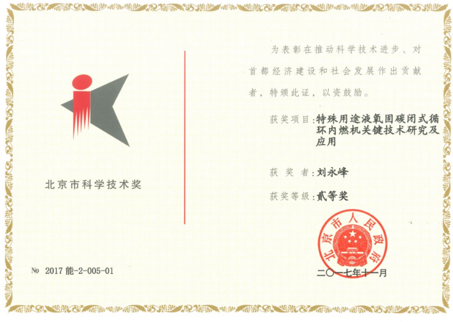 近日,北京市召开2017年科学技术表彰大会,会议由陈吉宁市长主持,市委书记蔡奇等市领导参加,会议表彰了2017年北京市科学技术获奖人员,公司刘永峰教授团队完成的“特殊用途液氧固碳闭式循环内燃机关键技术研究及应用”获得科学技术二等奖(技术发明类)。该项目在国家高技术研究发展计划暨863计划、国家自然科学基金、北京市自然科学基金、天津市科技计划、住房和城乡建设部科技计划等项目持续支持下,历经十余年的工作积累完成,授权发明专利10项,发表论文93篇(SCI收录34篇,EI收录36篇),专著1部。近三年来,该科技成果在市政工程和隧道建设等众多大型工程建设项目中得到了广泛应用,创造直接经济价值约1.5亿元,环保效益尤为显著。成果的推广应用对于推动我国特殊用途内燃机的发展,提升我国军民融合多领域特殊用途内燃机的性能具有重要意义。