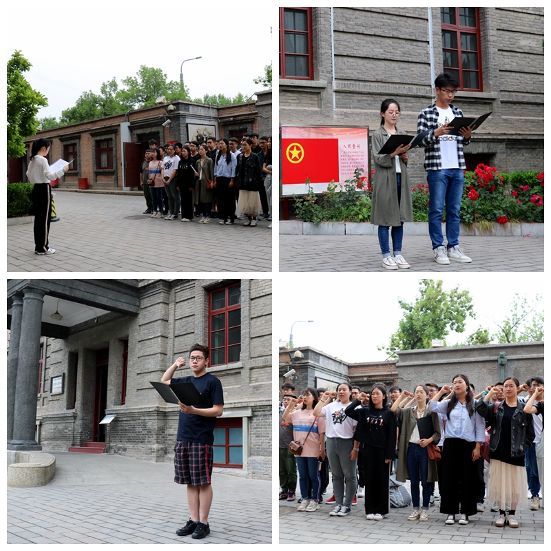 主持人李馨硕简要介绍了五四运动的起源。张瑀琪、张美嫡同学宣读五四精神倡议书:同学们应该有着树立心系天下、志存高远、脚踏实地的伟大志向、坚持崇尚科学、追求真知、实事求是的科学精神、锤炼勇于选择、敢于拒绝、不畏困难的刚毅品格和培养胸怀宽广、包容天下、平和处世的认知态度。王健尧同学领誓,团员们在红楼前重温入团誓词,为祖国70华诞献上祝福。随后,大家参观经复原修复的北老员工教室、图书报刊阅览室以及李大钊在北大红楼的办公室、“五四现场”展览,回顾新文化运动和五四运动时期青年先锋们为救亡图存和民族解放而英勇斗争的历史过程,深切感悟到以李大钊为代表的无产阶级革命先驱为马克思主义在中国的传播做出的卓越贡献。