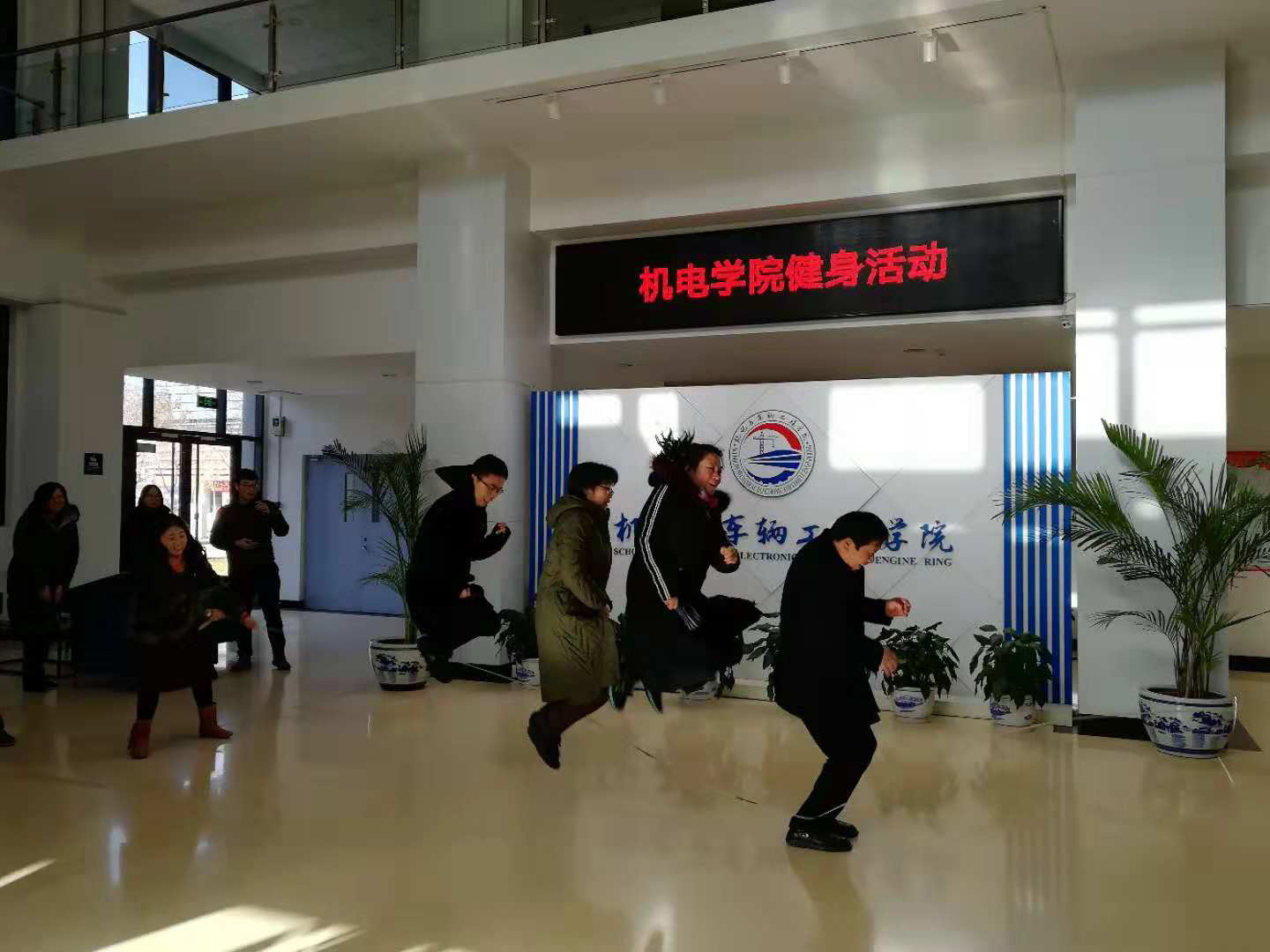为了更好的丰富教职工的文体生活,初冬时节,我公司工会组织大家参加了跳大绳活动。此次活动分为接力循环跳和小组集体跳,接力循环跳考验大家的反应能力,一人跑跳进入跳几下跑出去,下一名队员接上,各系计时比赛,队员情绪高涨,气氛特别活跃!小组跳考验大家的协同能力,在小组集体跳时,摇绳的队员一会快摇,大家集体快跳,一会儿慢摇,大家集体慢跳,有时候摇绳的队员故意忽快忽慢,跳绳的队员们就要迎合摇绳的节奏时快时慢,有人稍不留神就会踩绳,引来大家阵阵欢笑,气氛轻松欢快!大家在欢声笑语中卸掉了工作的紧张,笑声也给初冬增添了一些暖意!