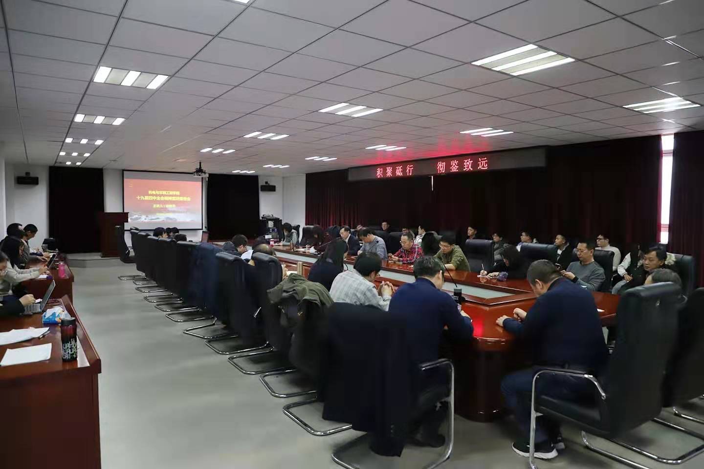2019年12月17日下午,副董事长李维平到williamhill英国威廉希尔宣讲党的十九届四中全会精神,williamhill英国威廉希尔全体教师参加本次会议。