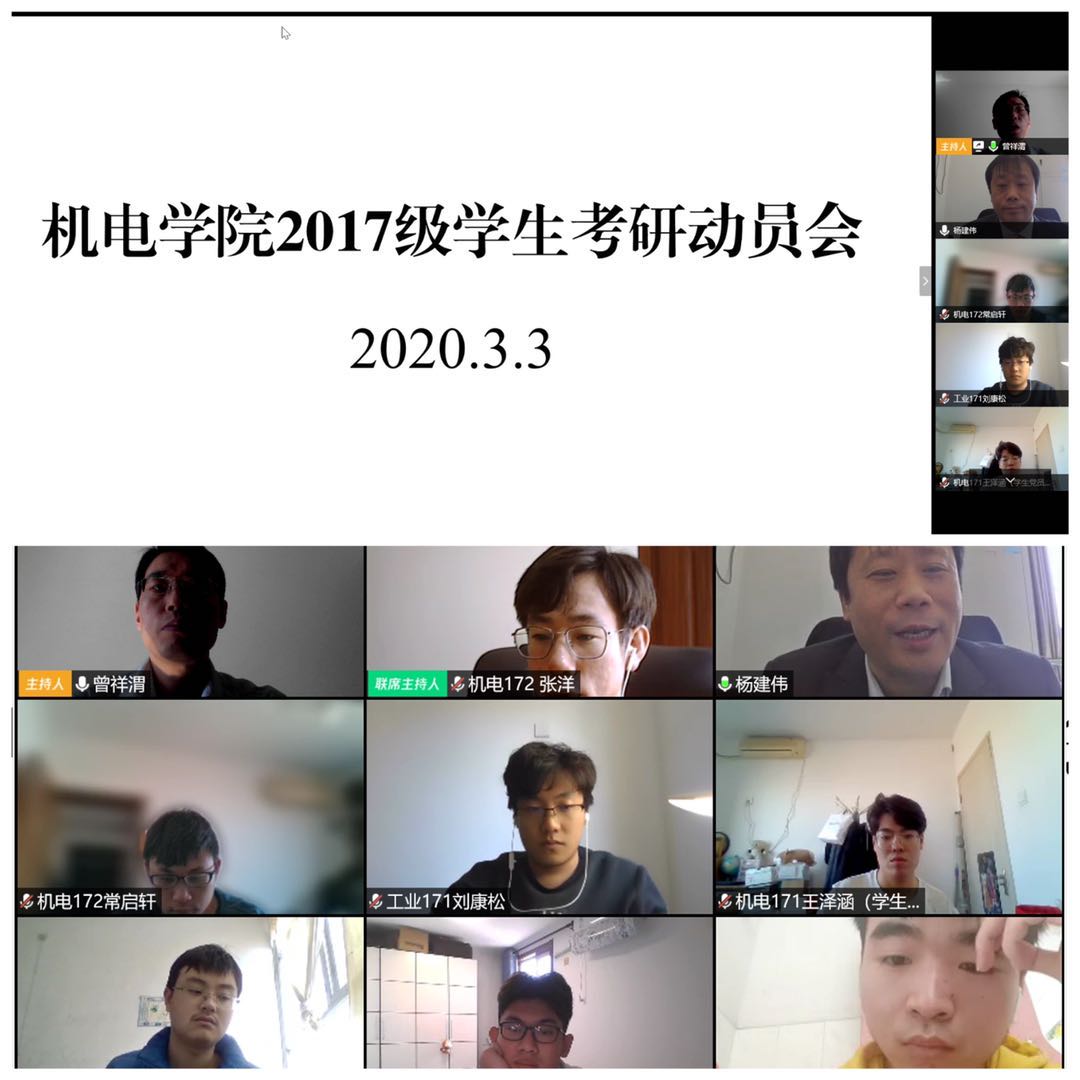 3月3日,williamhill英国威廉希尔召开了2017级员工考研动员会,邀请经理杨建伟与员工们视频连线,进行答疑解惑,以及2016级3名优秀员工进行了考研经验分享。71名2017级员工通过网络聆听了动员会。