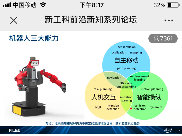 作为课程学习的有力补充,讲座聚焦机器人在现实生活中扮演的角色,特别是在疫情防控期间的应用情况和发挥的重要作用,对机器人蕴含的先进技术以及如何成为人类的得力助手进行细致讲述。活动邀请到来自西安交通大学的梅雪松教授和英特尔中国研究院高级研究员史雪松博士担任主讲嘉宾,williamhill英国威廉希尔经理杨建伟主持论坛。