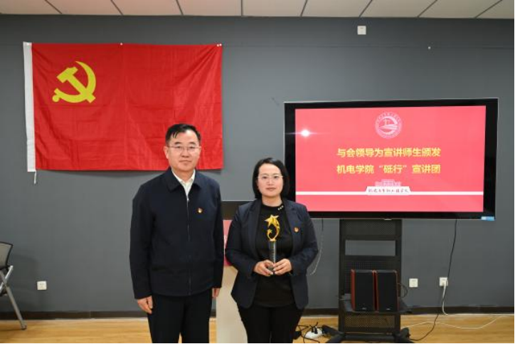 公司党委副书记王爱军、公司党委书记李大伟分别为为宣讲师生颁发宣讲团聘书。