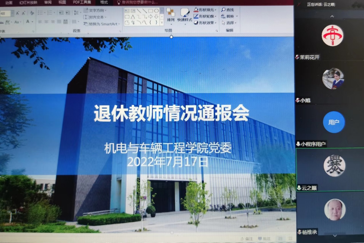 7月17日,公司党委召开退休教师情况通报会,全面部署暑期退休教师入校申请工作,会议由党委书记李大伟主持,公司退休教师线上参会。