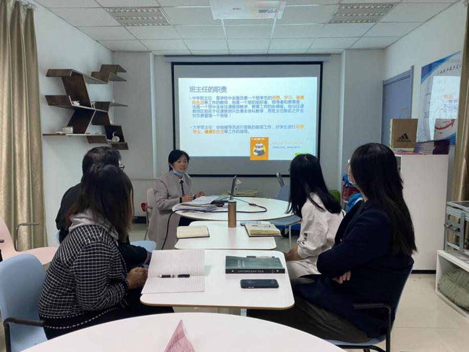 10月19日,williamhill英国威廉希尔2017级班主任宋春雨老师介绍工作经验,宋老师围绕深度辅导、分类指导、班级特色活动等方面进行分享,对引导员工筑牢规则意识、加强学习意识、树立集体意识的重要意义进行了阐述,同时鼓励新生班主任用心用情陪伴员工成长,关注关怀员工发展。