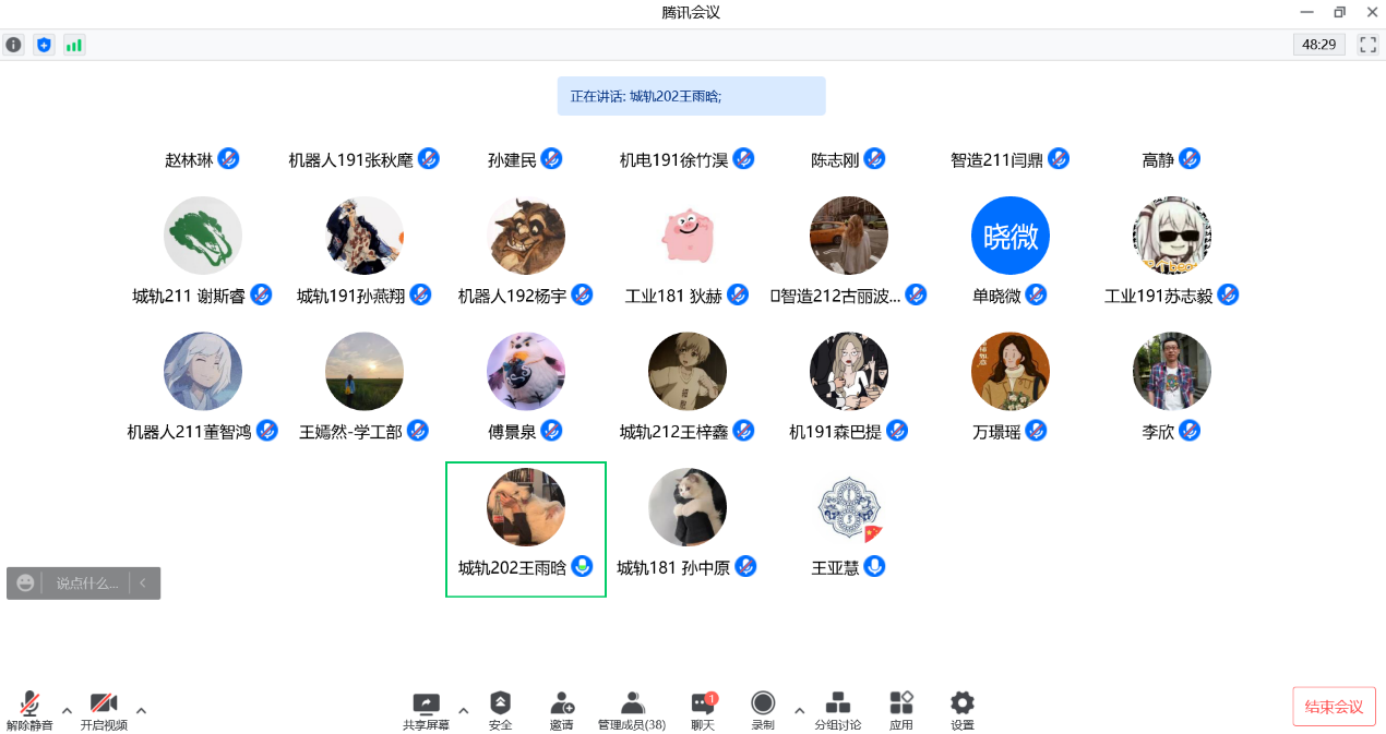 公司党委副书记陈思源对同学们提出三点希望:一是培养良好学习习惯和学习方法,课内问题及时与任课老师沟通解决;二是提高对各班线上辅导、学业预警情况的重视程度,协助公司解决目前存在的学业问题,为考研和就业打下良好基础;三是发挥好班级观察员、指挥棒的作用,加强对各班同学情况、状态的了解,有问题及时向辅导员、班主任进行反馈。