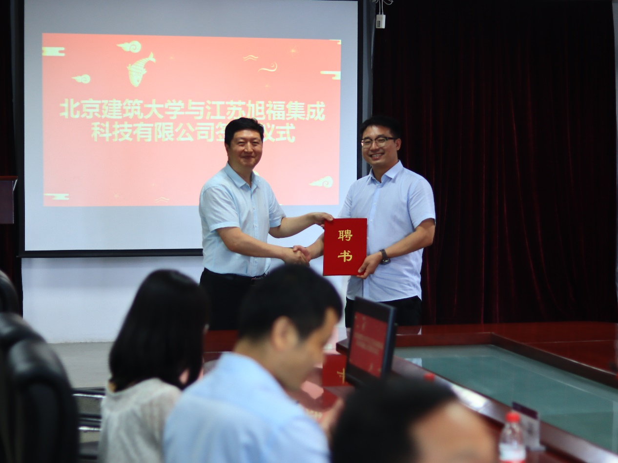 在校企双方进行充分的沟通交流后,签订合作协议,为董事长沈建东、总经理田红杰颁发校外实践基地指导教师聘书。