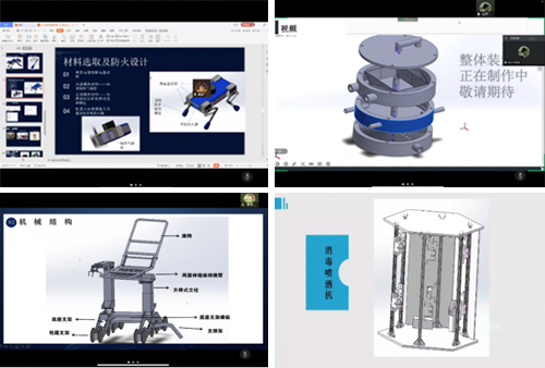 答辩过程中,9支参赛队伍充分结合学科专业特点,依次对其作品进行详细的展示与介绍。项目主题涵盖节能环保、疫情防控、智能生活、助农助老、防灾救火与工程测量等方向。评委们认真听取汇报并一一进行点评,提出宝贵意见建议。
