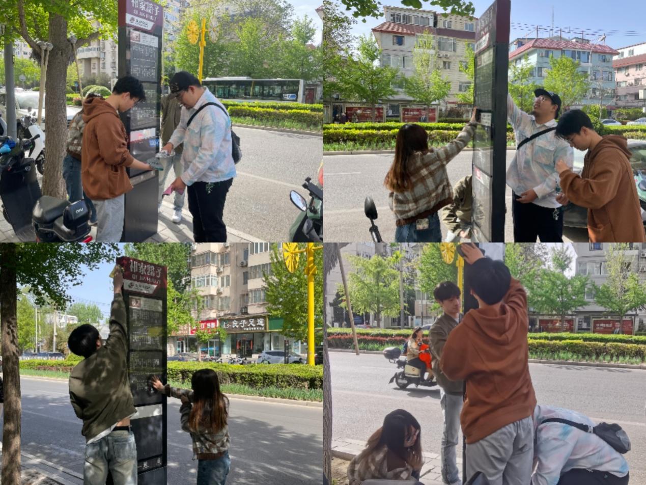 在工作人员的带领下,公司师生们集体前往祁家豁子公交站点,对相应站点站牌的种类进行实地考察,并认真开展站牌清理工作。员工志愿者带着小铲子、小毛巾清理公交站牌上的污渍,打造清新整洁的站台环境,在躬行实践中感受劳动的魅力。