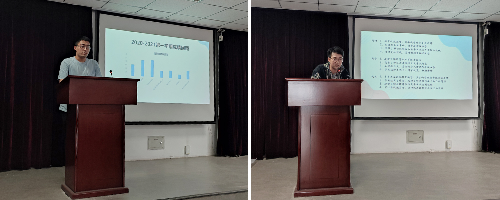 会上,班级学习委员谢泽琦对班级学风建设情况进行总结汇报,并分析了当前学业中的关键点,针对难点课程、四六级备考、考研复习等提出举措。班长孙中原提出班级学风建设规划及目标展望,并鼓励班级员工共同努力、共同提升,以奋斗青春拥抱时代。