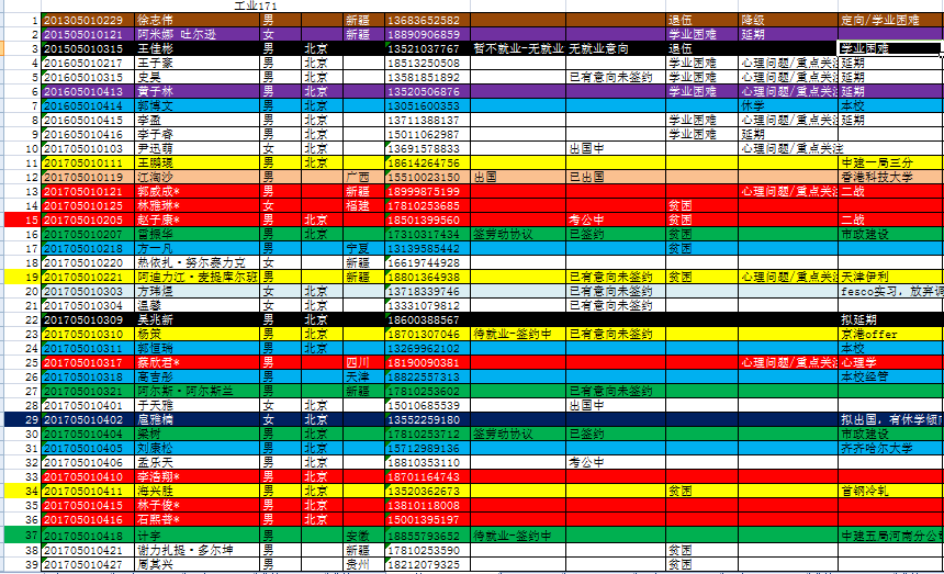 建立课堂出勤日报制度。由各班班长、学委填写课堂出勤日报表,员工会负责每日班级课堂通报,辅导员及时跟进并监督指导,并形成出勤周报。毕业班级以就业升学情况为为考察指标,以周为单位汇总上报,及时掌握毕业生的就业情况,并做出有针对性的就业指导和帮扶。