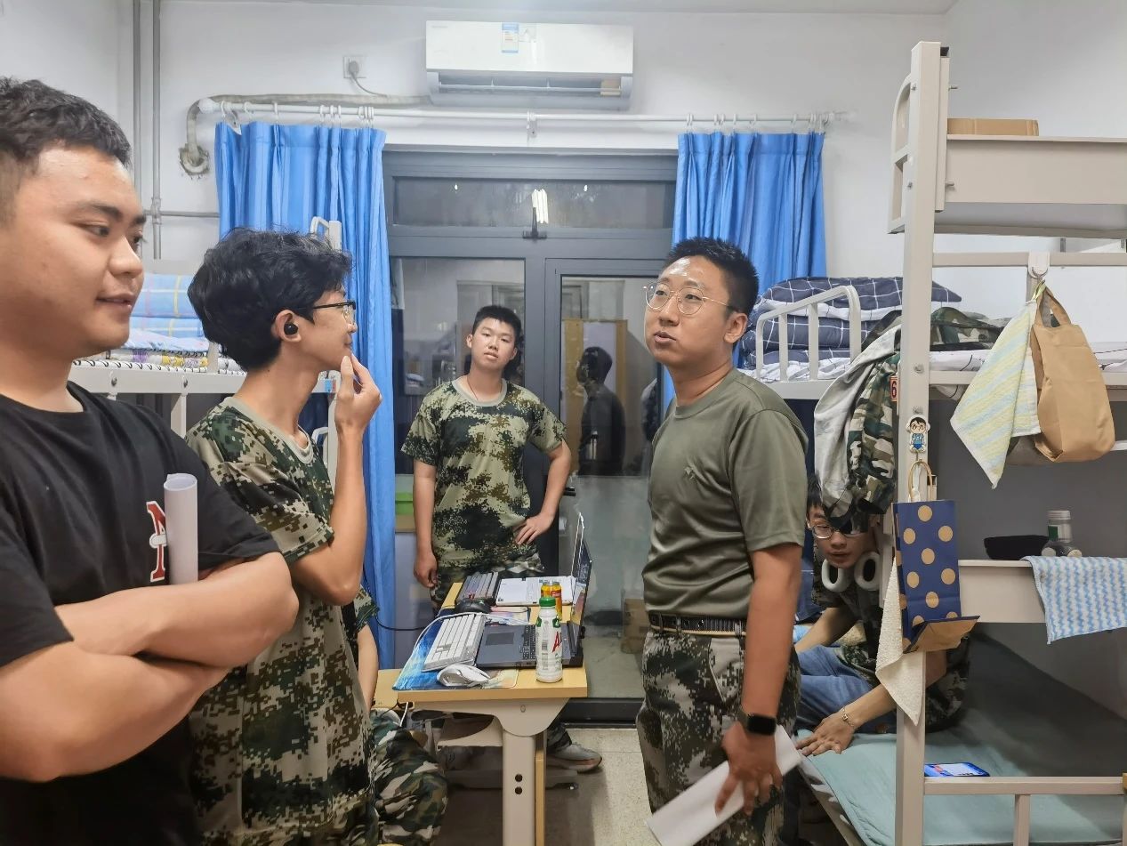 在走访过程中,傅景泉老师与新生们亲切沟通,详细询问了他们在军训时期的适应情况,并强调了相关要求。同时,老师还关心慰问了新生的生活状况,鼓励他们积极适应新环境,遇到问题及时与辅导员或老师沟通。同时部分新生也通过提前学习高数,观看新闻联播等方式丰富军训之余的生活。
