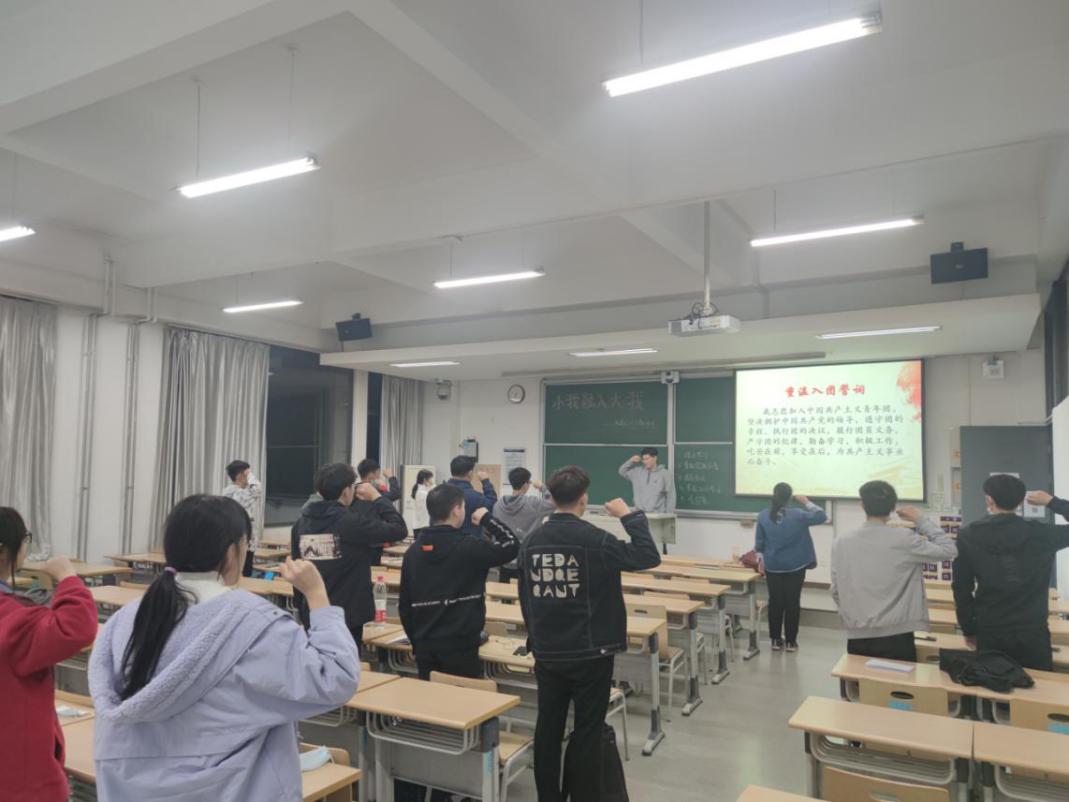 在重温入团誓词和团歌环节,团员们大声朗读,齐声歌唱,不忘入团初心,努力争做优秀团员。