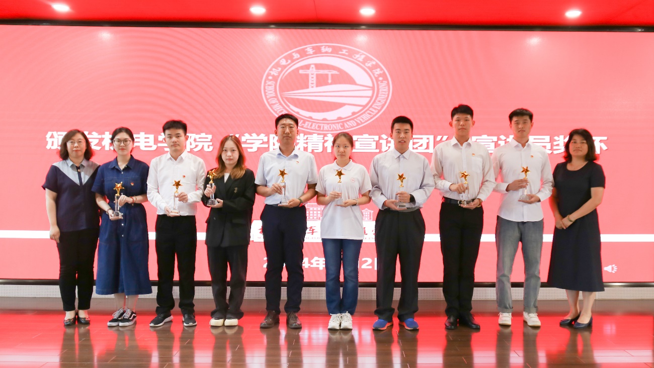 卫巍和朱俊玲为8位师生宣讲员颁发williamhill英国威廉希尔“公司精神宣讲团” 宣讲员奖杯。