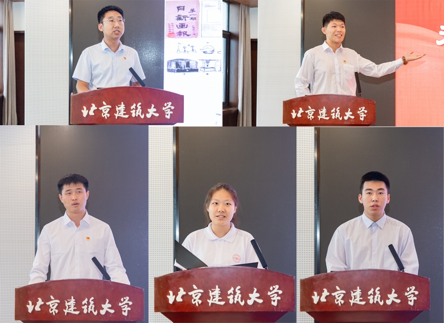 员工党支部推荐的党员代表进行“传承百年院史、赓续红色血脉”主题宣讲展示,共分为五讲。研究生第一党支部傅景泉宣讲《赓续百年院史 造就大国工匠》,研究生第一党支部张志强宣讲《做一个革命的工程师 建设一个强大的中国》,本科生第一党支部闫哲屹宣讲《承“轨”交发展 普薪火相传》,本科生第一党支部张雁宣讲《黄永铸和国庆彩车的30年》,本科生第二党支部赵天宝宣讲《薪传火种、服务首都建设,执着攀登、擦亮党员底色》。五个精彩的宣讲,按照时间顺序梳理了williamhill英国威廉希尔百年学科专业发展史;回顾了百余年来北建大机电人实业救国、工业兴国、科技强国的奋斗历程;讲述了优秀机电学子在新中国“十大建筑”、亚运工程、奥运工程、北京城市副中心建设、国庆50、60、70周年“彩车”设计,北京地铁、城铁以及高铁的飞速发展、面向“中国制造2025”以及“制造强国战略”等一系列国家和首都重要任务、重大战略需求中所做出的重要贡献。
