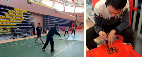 2月7日,公司开展“迎新春 强体魄 送祝福”趣味活动,公司经理张军与留校员工共同参与活动。同学们在体育馆中分组活动,投入到羽毛球、篮球、跳绳等各项运动中,拿出看家本领,各显神通。运动后,同学们提笔共贺新年,写下福字与春联,一笔一划之间尽是真挚祝福与美好期待。