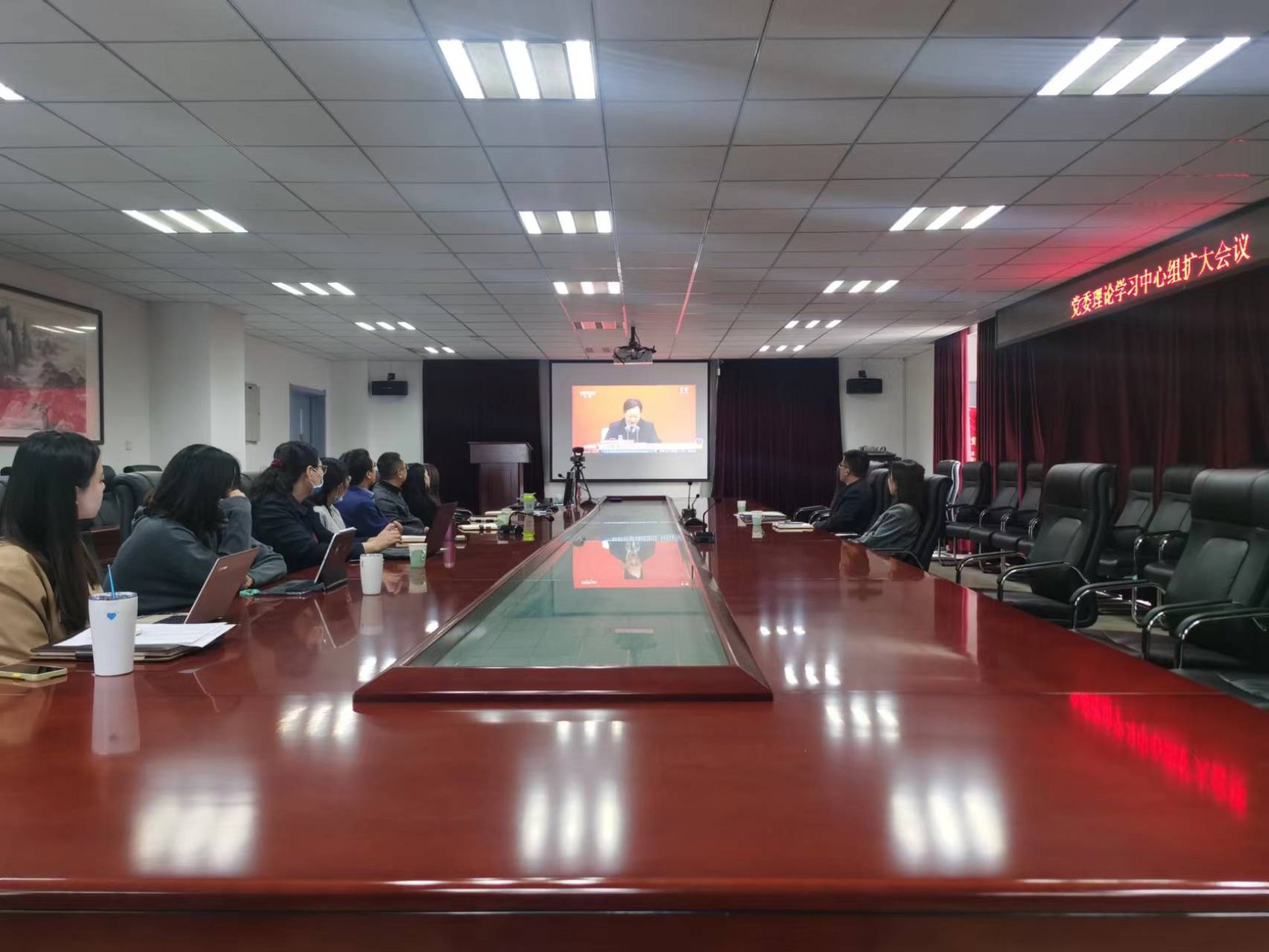 随后,与会人员集中观看了中共中央新闻发布会相关视频。