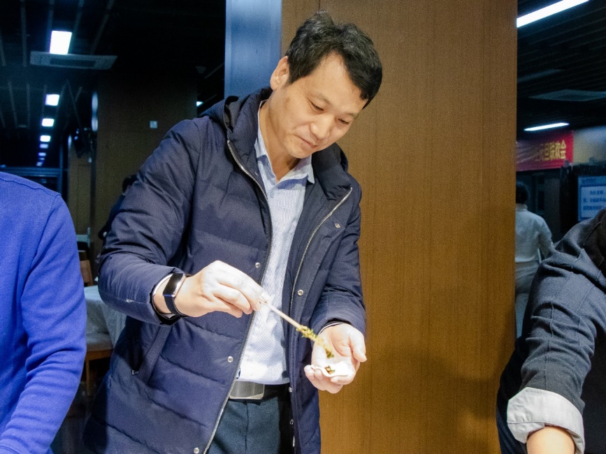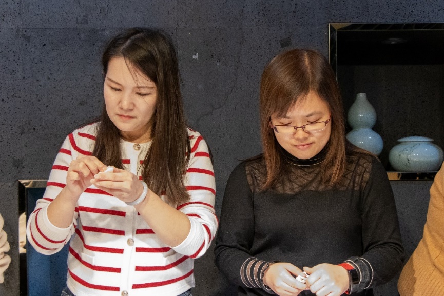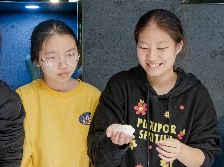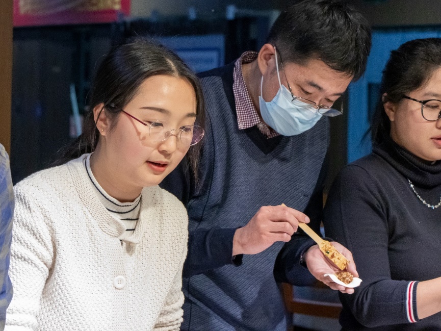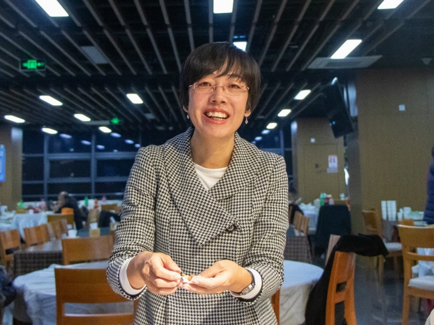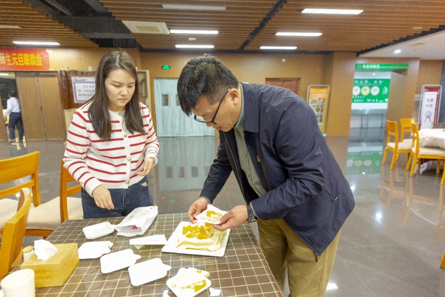 精彩的节目表演后,全体师生一起包饺子,其乐融融,一张张饺子皮和一团团馅料在老师同学们手里变成一个个白白胖胖的饺子,过程中,大家互相帮助,场面十分热闹。