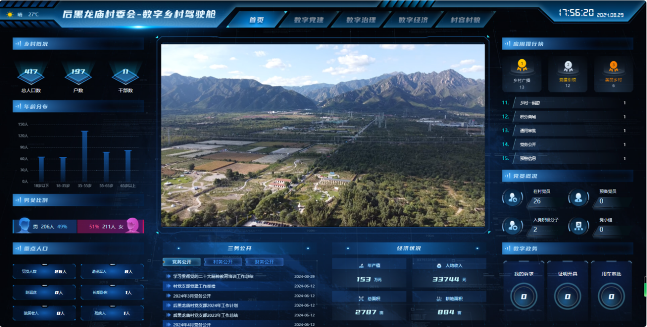 数字赋能乡村振兴,既有“智”又有“质”。实践团利用公司工业工程专业数字软件开发优势,于2024年8月驻村开展乡村数字平台建设,进行数据收集、整理、筛选和录入,进一步优化村内信息平台,完善村庄数据驾驶舱,实现了村内重要资料和信息“一键式”查询。