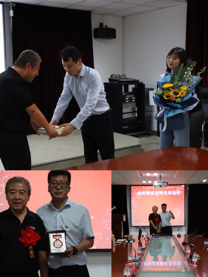 公司副经理王衍学和党委副书记陈思源为顾老师赠送精美纪念相册和花束,对顾老师光荣退休表示衷心的祝贺。