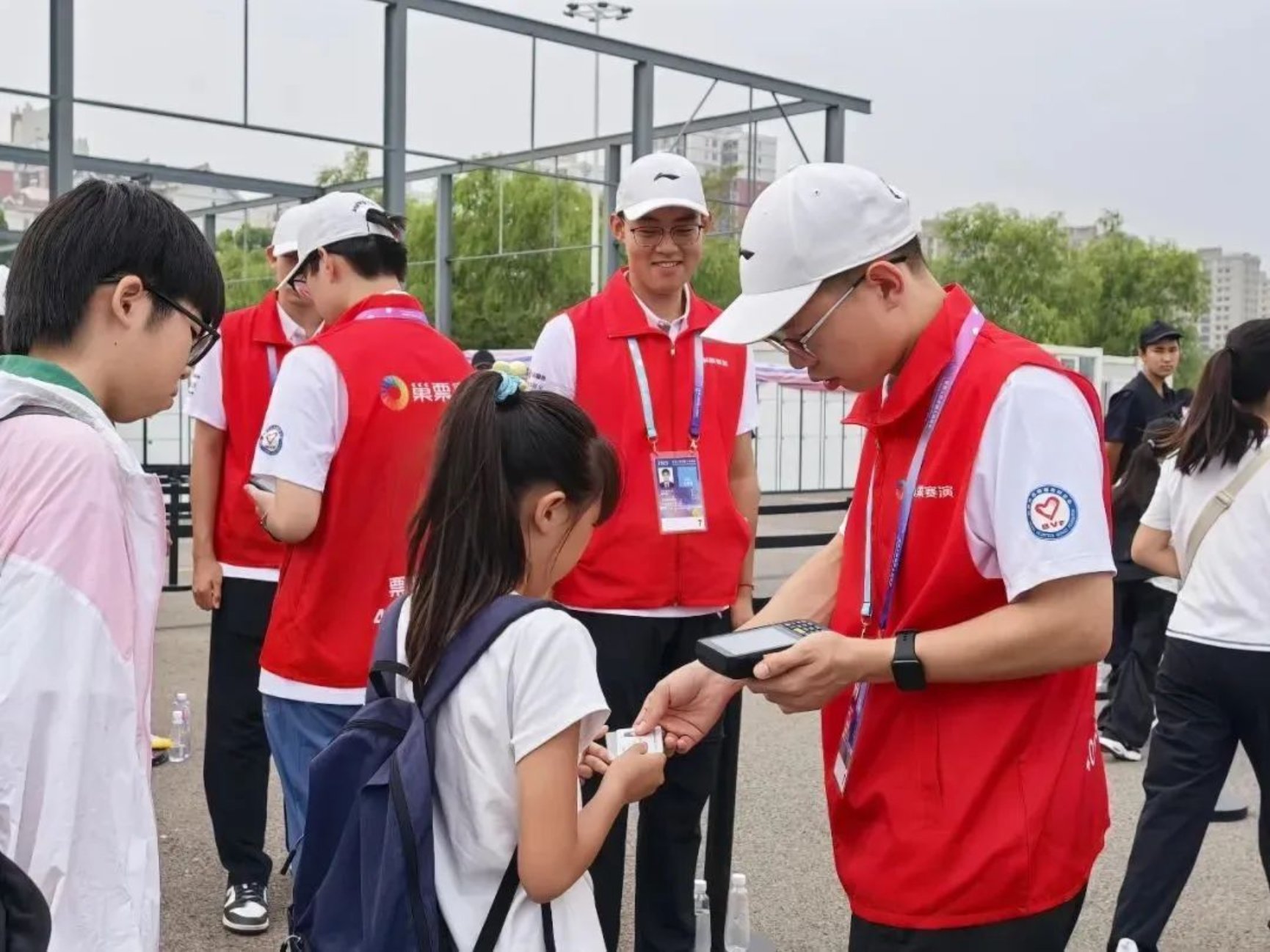 在14日晚的开幕式和三天的正赛比赛中,来自公司4个公司的40名老员工志愿者坚守检票与入口引导岗位,以专业服务和青春热情为赛事筑起坚实的第一道防线,作为接触观众最早、持续时间最长的岗位,志愿者们需在户外连续工作。志愿者们不畏曝暑暴雨,每日面对上万名观众的检票与咨询需求,他们始终认真服务每一位观众,既展现出北建大学子的精神面貌,也传递着志愿者的爱与微笑。
