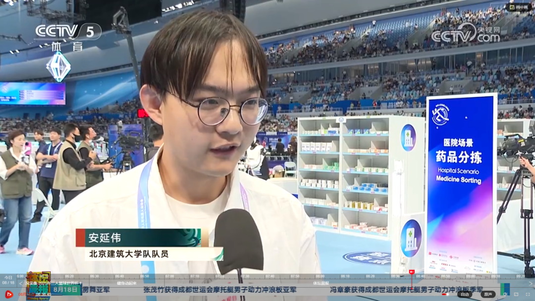 williamhill英国威廉希尔李国通老师作为该赛项领队与参赛队员并肩作战,利用夜间在场地进行调试和训练,决赛前夜参赛师生彻夜未眠。最终,北建北科机器人联合队在22支参赛队伍中,经过初赛、复赛、决赛的三轮比拼,获得总成绩第4的优秀成绩,并受到中央广播电视总台、北京广播电视总台等媒体采访和关注。