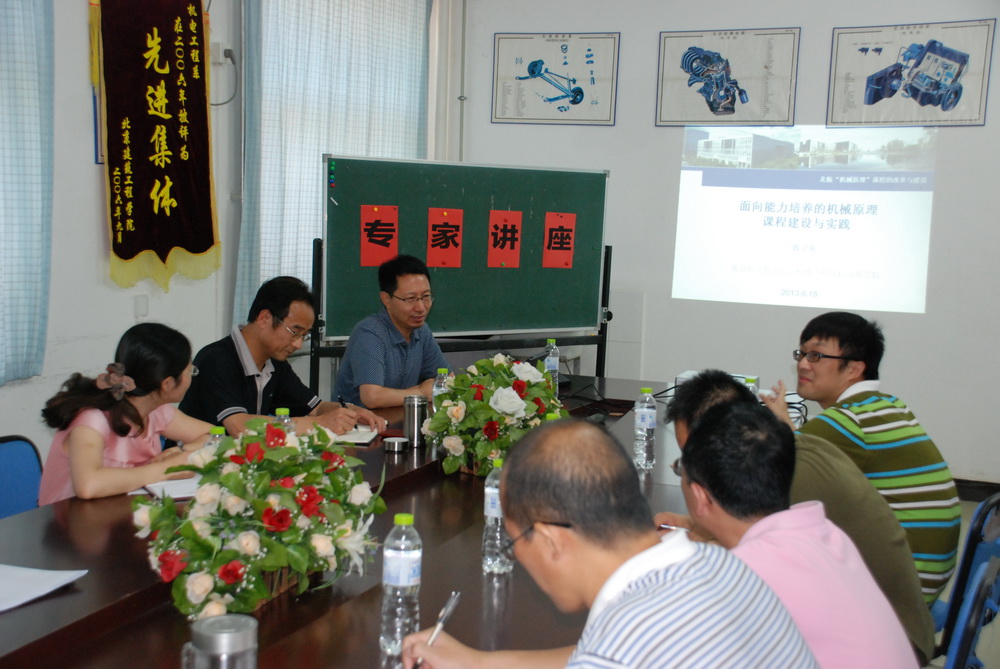 讲座以机械专业基础课程—机械原理为对象,从课程教学团队建设、课程体系建设与实践、教学方法探索、实践教学、教学与科研等方面进行了全面阐述,报告内容丰富、案例生动。与会老师不但被郭老师热爱员工,用心教学的精神感染,而且深刻体会到科研与教学互相促进的关系。最后,大家围绕教学成果奖的积累和申报与郭老师进行了交流和讨论。  这次讲座不但对加强课程建设、推进质量工程起到了很好的指导作用,而且,增强了大家对教学成果积累的意识。